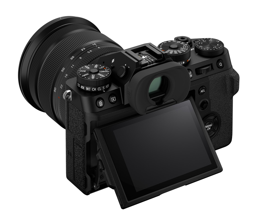 Wie die bisherigen Modelle der X-T-Reihe verfügt die X-T5 über große Einstellräder für Verschlusszeit, ISO-Empfindlichkeit und Belichtungskorrektur. Der neue LCD-Monitor bietet eine Auflösung von 1,84 Millionen Bildpunkten und lässt sich in drei Richtungen schwenken. Der elektronische Sucher der X-T5 bietet ein hochauflösendes Sucherbild mit 3,69 Millionen Bildpunkten und 0,8-facher Vergrößerung.