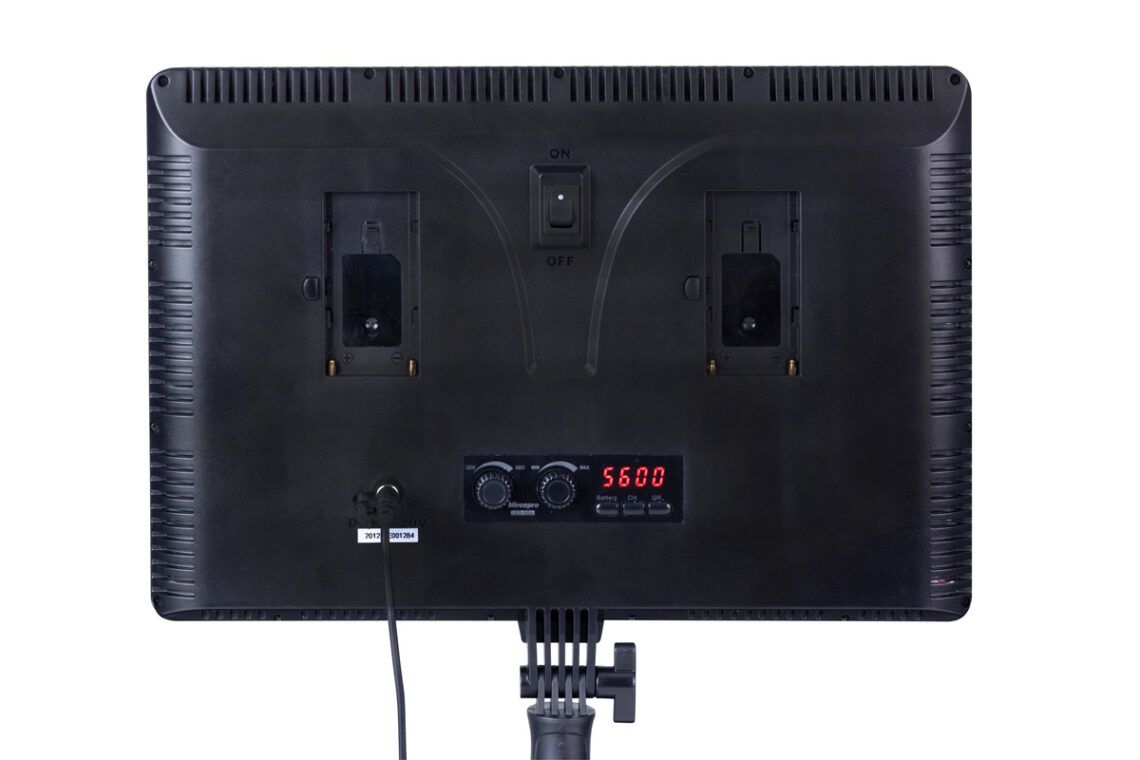 Die Farbtemperatur der Helios LED-50VC lässt sich zwischen 3200 und 5600K einstellen, die Helliglkeit ist von 0 bis 100% regelbar – dafür gibt es jeweils einen Drehregler an der Gehäuserückseite. Die eingestellten Werte sind an einem LCD-Display ablesbar. Betrieben wird die Leuchte entweder per Netzteil oder mit zwei als Zubehör erhältlichen Akkus vom Typ Sony NP-F. Die Beleuchtungsstärke beträgt 1000 Lux, der Farbwiedergabeindex TLCI (Television Lighting Consistency Index) wird vom Hersteller mit 97 Prozent angegeben.