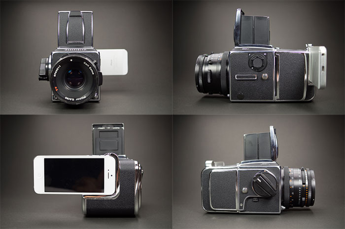 Der Hasselnuts-Adapter macht aus Kameras des Hasselblad V-Systems und einem iPhone (fast) eine Mittelformat-Digitalkamera.