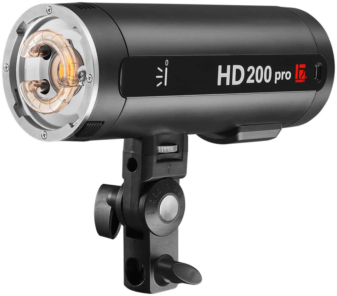 Mit 200 Ws bietet der ebenfalls von einem Lithium-Ionen-Akku stromversorgte Studioblitz HD-200 Pro deutlich mehr Leistung. Auch er unterstützt TTL und HSS sowie eine Synchronisation auf dem ersten oder zweiten Verschlussvorgang. Zudem verfügt er über einen „Freeze-Modus“ mit einer Abbrennzeit von 1/20000 Sekunde. Die Recycling-Time liegt bei maximal 1,3 Sekunden.