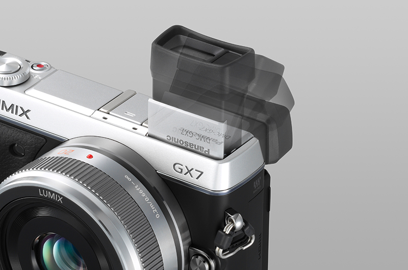 Die neueste kompakte spiegellose Systemkamera LUMIX GX7 von Panasonic bietet einen 16 Megapixel Live-MOS-Sensor mit Bildstabilisator, eine hohe Empfindlichkeit, schnelle Verschlusszeiten, einen schnellen Kontrastautofokus, ein Funk-Modul sowie einen kippparen Live-View-Sucher und ein schwenkbares Touch-Display.
