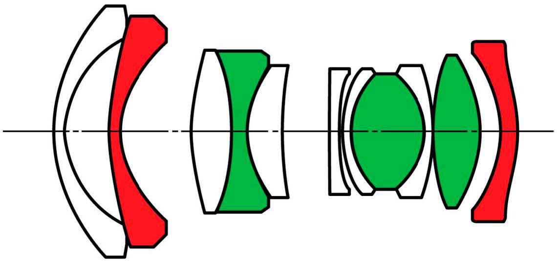 Im optischen System sind 11 in sieben Gruppen angeordnete Linsenelemente verbaut. Der Hersteller verspricht verzeichnungsfreie Fotos von hoher Bildqualität.
