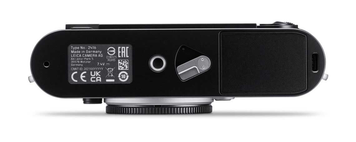 Ein Novum ist der Verzicht auf die traditionelle Bodenplatte, was einen direkten Zugriff auf den Akku, den USB-C-Anschluss und die SD-Karte ermöglicht. Zusätzlich zum UHS-II-SD-Kartensteckplatz ist die Leica M11 mit einem internen Speicher von 64 GB ausgestattet, der es ermöglicht, Bilder parallel auf zwei verschiedenen Speichermedien zu sichern.