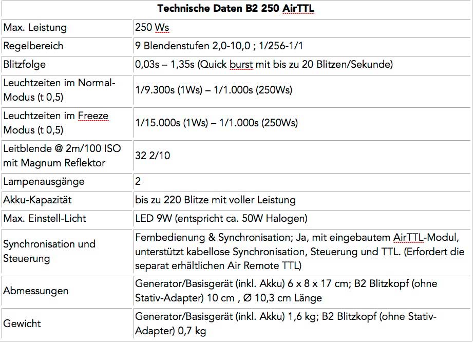 Profoto hat einen neues kompaktes und leichtes Blitzsystem vorgestellt, das bei geringerer Leistung über die gleichen Vorzüge wie das B1-System verfügt. Er ist schnell genug, um mit der Kamera Schritt zu halten und hat ungefähr fünfmal so viel Leistung wie ein normaler Aufsteckblitz. Wie der größere Bruder bietet der B2-Blitz TTL-Kompatibilität für Canon- und Nikon-Kameras und die Möglichkeit zur Kurzzeitsynchronisation (HSS).