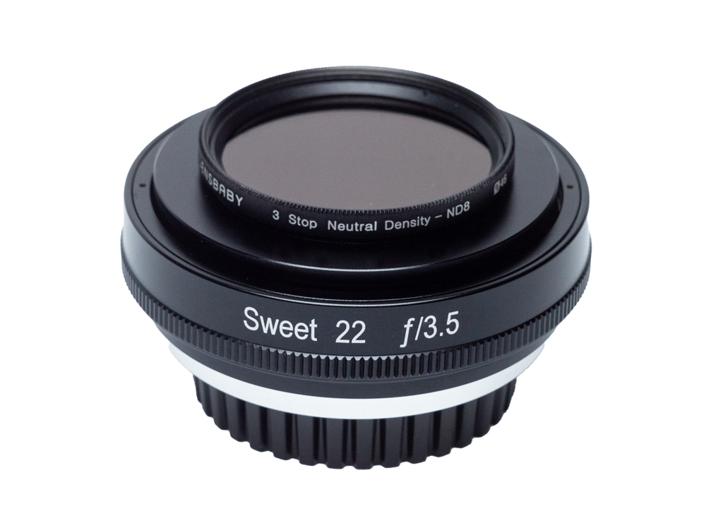 Um bei sehr hellem Licht eine Überbelichtung zu vermeiden, liegt dem Sweet-22-Kit ein ND8-Filter bei. Das Lensbaby Sweet 22 hat ein 46-mm-Filtergewinde, so dass auch andere Filter wie CPL-Polarisationsfilter verwendet werden können. Das Kit enthält außerdem einen Hartschalenkoffer für das Objektiv und ein spezielles Lensbaby Objektivreinigungstuch.