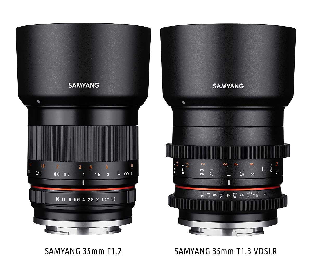 Beide Objektive wurden speziell für die hochauflösenden Bildsensoren moderner spiegelloser Systemkameras entwickelt und bieten eine Kleinbild-äquivalente Brennweite von 52mm (APS-C) beziehungsweise 70mm (MFT). Das SAMYANG 35mm T1.3 VDSLR-Objektiv besitzt die gleichen optischen Qualitäten und Features des Foto-Objektivs, wurde aber im Gegensatz zu diesem für professionelle Follow-Focus-Systeme konzipiert. Es ist mit einer rasterlosen und stufenlos verstellbaren Blende, einer weichen, leichtgängigen Schärfeneinstellung, seitlich ablesbaren T-Blendenwerten und Distanzskalen ausgestattet. Die Blenden- und Fokusringe besitzen Zahnkränze für die Fokussierung mittels Follow Focus und erlauben so ein weiches Nachführen der Schärfe beim Filmen.