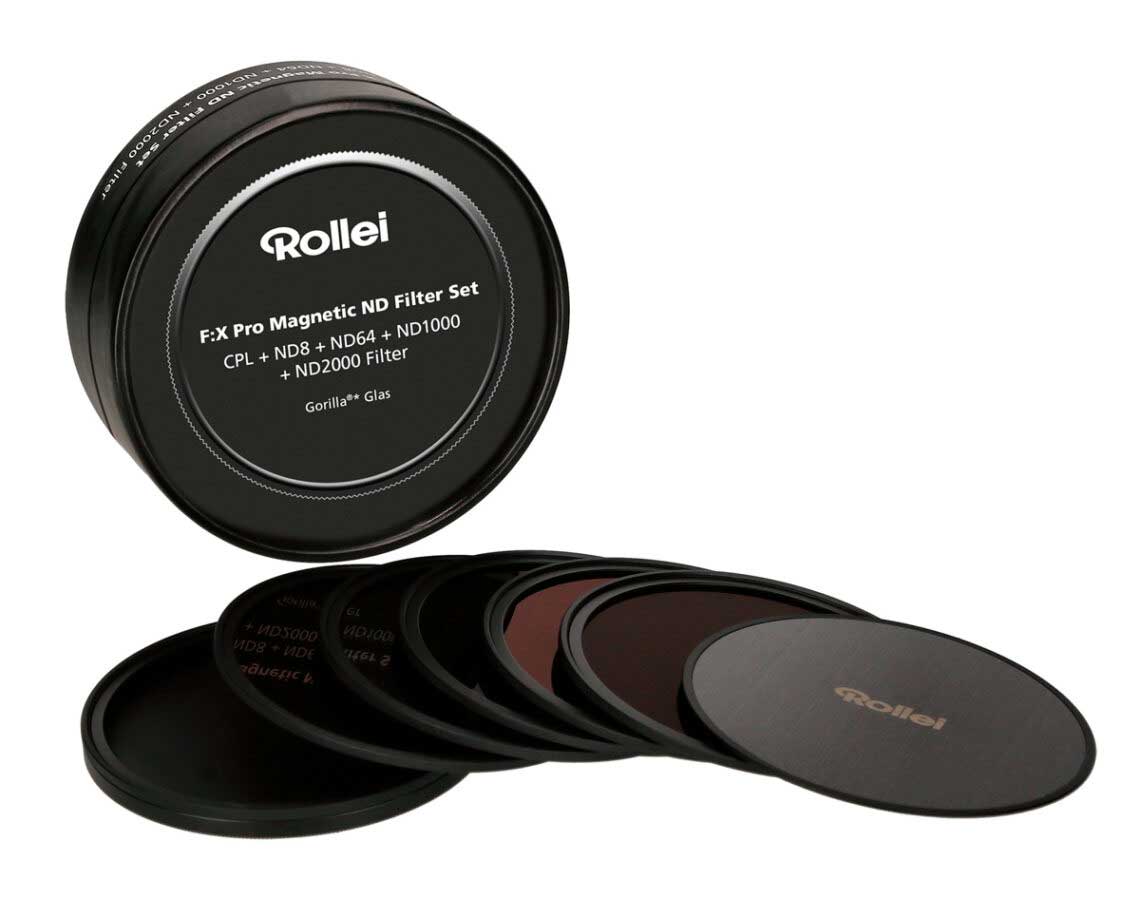 Rollei erweitert die F:X Pro-Produktlinie um magnetische Rundfilter aus Gorilla-Glas. Diese können besonders schnell am Objektiv gewechselt werden, da lediglich ein magnetischer Adapterring eingeschraubt werden muss, an dem der jeweils verwendete Filter haftet. Rollei bietet zur Einführung ein Set an, das neben einem Front- und einem Rückdeckel für den Transport einen CPL-Filter sowie vier ND-Filter in den Stärken ND8, ND64, ND1000 und ND2000 enthält. Erhältlich ist das neue F:X Pro Magnetic ND Filter Set mit Filterdurchmessern von 62, 67, 72, 77 und 82 Millimetern.