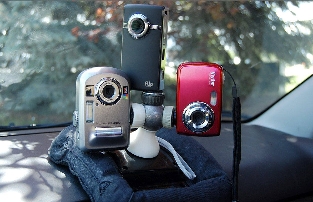 Der Gadget-Fan Troy Tolman hat eine Haltevorrichtung für Kameras erfunden, die im Wesentlichen aus einer Metallkugel und einem starken Magneten bzw. einem Saugnapf besteht. Magnet und Saugnapf dienen der einfachen Befestigung des auf den Namen „Maxis 360“ getauften Kugel-Stativs auf geeigneten glatten Oberflächen. Eine oder mehrere Kameras finden ihren Halt an der Metallkugel mittels eines magnetischen Adapters, der in das Stativgewinde eingeschraubt wird.