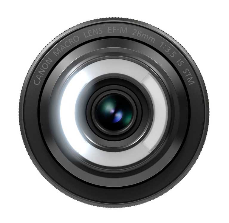 EF-M 28mm f3.5 Macro IS STM Front single light illuminatedAufgrund der kleinbild-äquivalenten Brennweite von 45mm eignet sich das EF-M 28mm 1:3,5 Makro IS STM gleichermaßen gut für Porträts und Weitwinkelaufnahmen. Seine 7-Lamellen-Irisblende erzeugt laut Canon ein attraktives Bokeh.