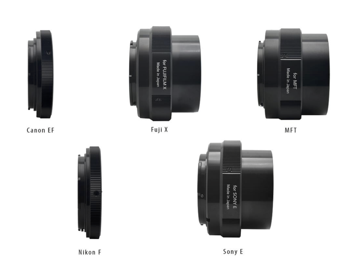 Das SZX SUPER TELE 400 mm F8 Reflex M ist mit einem Standard-T-Mount (Abstand 0,75 mm, Gewinde 42 mm) ausgestattet, mit dem es sich mittels Mount-Adapter an fünf unterschiedlichen Kamerasystemen (Nikon F, Canon EF, Fuji X, Micro 4/3 und Sony E) montiert lässt. Das Objektiv ist wahlweise mit und ohne Adapter erhältlich.
