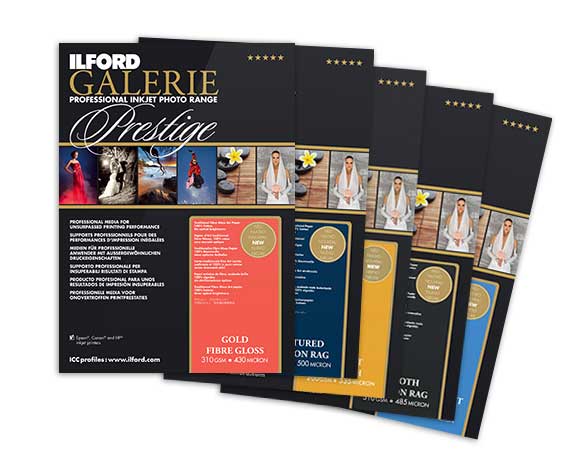 Ilford stellt fünf neue Inkjet-Medien der „Galerie Prestige“-Serie vor: Smooth Cotton Rag, Cotton Artist Textured, Textured Cotton Rag, Gold Fibre Gloss und Fine Art Smooth.