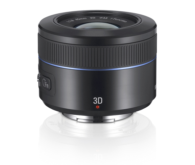 Mit dem innovativen NX-System-Objektiv F1,8/45mm 2D/3D beschreitet Samsung einen neuen technologischen Weg. Das Objektiv ermöglicht neben normalen 2D-Aufnahmen auch die Erstellung von 3D-Bildern und -Videos. Auf Knopfdruck sollen Fotos und Videos eine zusätzliche, räumliche Dimension gewinnen. Dies wird durch einen zuschaltbaren integrierten Strahlenteiler ermöglicht, der aus LCD-Shutter-Folien besteht, die im 3D-Modus in den Strahlengang geführt und wahlweise lichtdurchlässig oder -undurchlässig geschaltet werden (wie beim 3D-TV mit Polarisationsbrille). Der Strahlenteiler im Objektiv sorgt so für die Erzeugung einer Bilddatei mit rechtem und linkem Teilbild, wie sie für eine räumliche Bildwiedergabe erforderlich ist. Bei der Präsentation auf geeigneten 3D-HDTV-Geräten wie den Samsung Smart-TVs können die Betrachter die Bilder dann mit Tiefenwirkung betrachten.