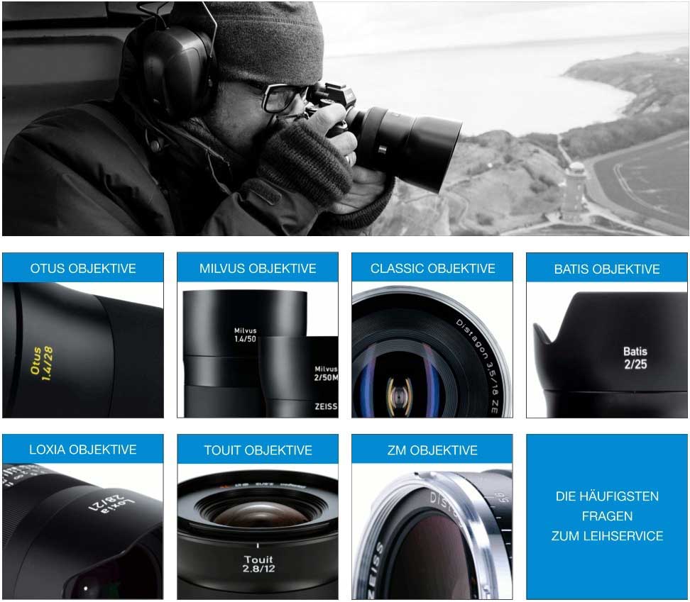 Fotografen mit Wohnsitz in Deutschland und Österreich haben ab sofort die Möglichkeit, Zeiss-Objektive online unter lens4rent.de zu leihen. Das Sortiment umfasst eine große Auswahl der im Handel erhältlichen Brennweiten von Zeiss für verschiedene Kamerasysteme – etwa die Objektivfamilien Zeiss Otus und Zeiss Milvus für Spiegelreflexkameras von Canon oder Nikon und Zeiss Batis für spiegellose Vollformatkameras von Sony. Das Angebot richtet sich an Profis, Hobbyfotografen und Kunden, die Zeiss-Objektive vor einem Kauf in Ruhe testen möchten.