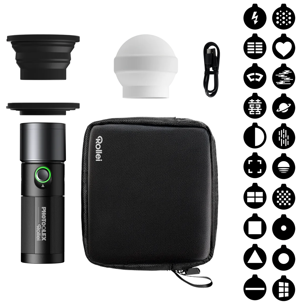 Ein kreatives Werkzeug für Fotografen und Videografen mit höchsten Ansprüchen. Mit dem neuen Photoolex Gobo Light liefert Rollei ein interessantes LED-Effektlicht. Es erweitert die Grenzen kreativer Lichtgestaltung für wenig Geld. Ausgestattet mit einer 10-Watt-Lichtquelle, 20 austauschbaren Gobo-Aufsätzen und vier variablen Farboptionen (Rot, Blau, Gelb und Weiß), eröffnet diese kompakte Lichtlösung vielfältige Möglichkeiten für anspruchsvolle Inszenierungen in Fotografie und Videografie.