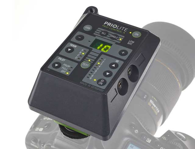 Das Priolite-Kit für Pentax gibt es in zwei Ausführungen, in denen jeweils die neue bi-direktionale Funkfernbedienung HS-P enthalten ist. Diese funkt im 2,4 GHz-Bereich und kann maximal 36 Blitzgeräte individuell steuern.