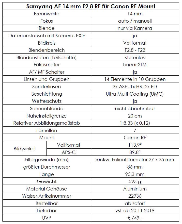 Das Superweitwinkelobjektiv ist ab sofort zum Preis von 749 Euro bei Walser, dem Distributor für Samyang in Deutschland und Österreich, vorbestellbar. Die Auslieferung erfolgt voraussichtlich ab dem 20. November 2019. Weitere Informationen finden Sie auf den Internetseiten der Walser GmbH und auf den Internetseite von Samyang.