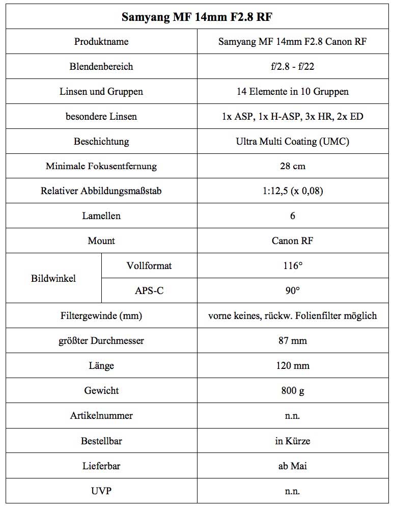Samyang kündigt erste Objektive für Canon RF an: 14 mm F2.8 und 85 mm F1.4 ab Mai 2019 verfügbar