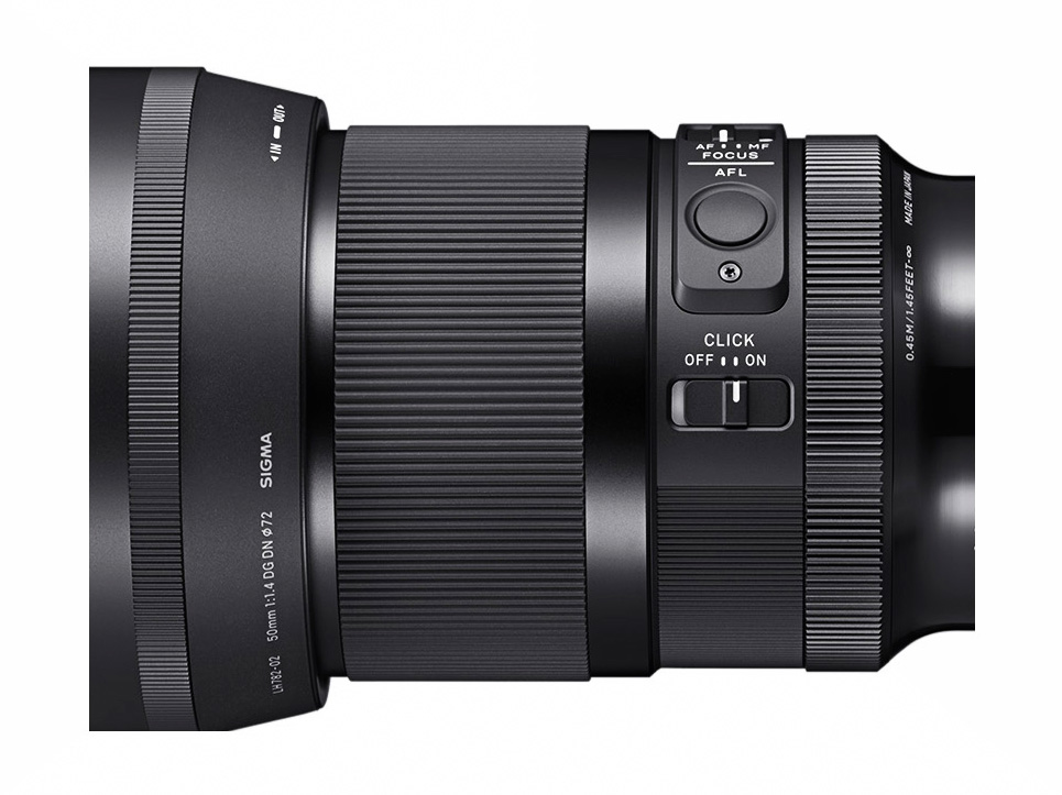 Das Objektiv ist umfangreich ausgestattet. Es bietet einen Fokusmodus-Schalter, einen Blendenring-Klick-Schalter zum Ein- und Ausschalten des Klicks bei der Wahl der Blende via Blendenring sowie einen Blendenring-Sperrschalter, der das unbeabsichtigte Verstellen des Blendenrings verhindert. Außerdem verfügt es über eine AFL-Taste, der in Abhängigkeit vom Kameramodell beliebige Funktionen der Kamera zugewiesen werden können. Das SIGMA 50mm F1.4 DG DN | Art ist staub- und spritzwassergeschützt und die Frontlinse des Objektivs ist mit einer wasser- und ölabweisenden Beschichtung versehen.