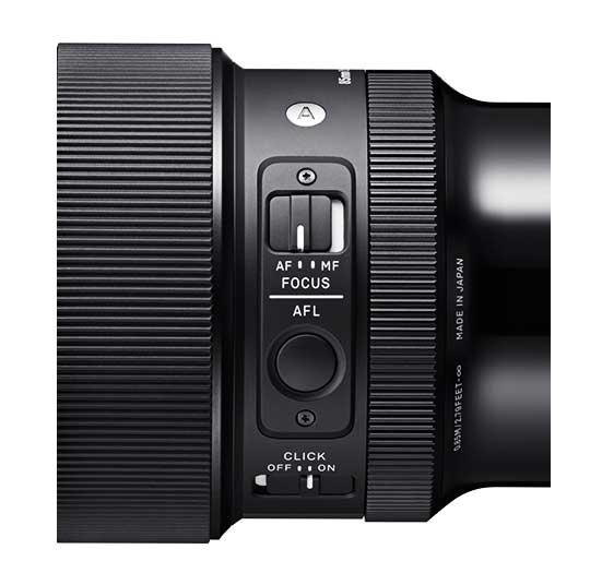 Das neue SIGMA 85mm F1.4 DG DN | Art bietet trotz der geringen Größe umfangreiche Funktionen. Dazu zählen ein Blendenring-Sperrschalter, der die unbeabsichtigte Bedienung des Blendenrings während der Aufnahme verhindert, ein Fokusmodus-Schalter sowie eine AFL-Taste, der über die Kamera ausgewählte Funktionen zugewiesen werden können.