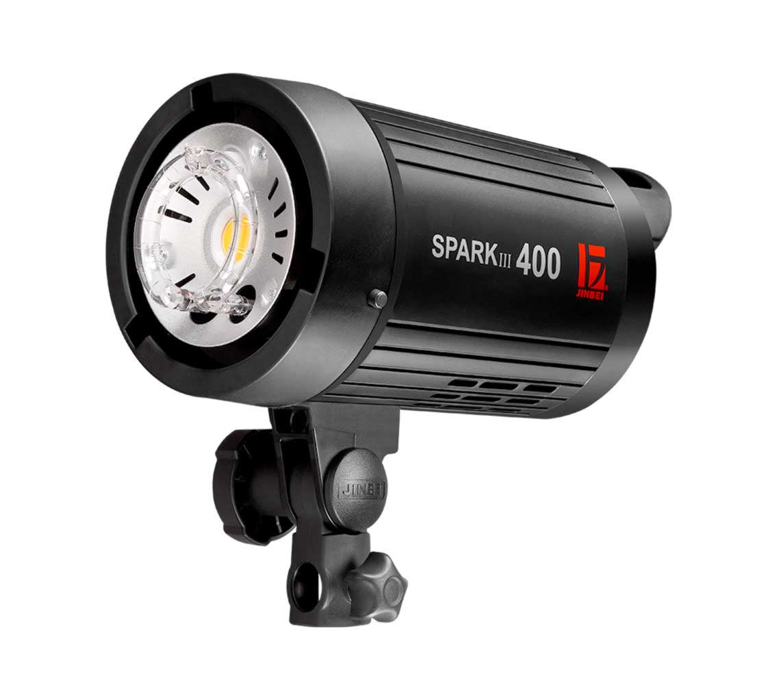 Das vom Jinbei Spark III-400 abgegebene Licht hat eine Farbtemperatur von 5500 K (± 200 K). Sein regulierbares 15-Watt-Einstelllicht ermöglicht es, die Lichtwirkung bereits vor dem Auslösen zu beurteilen. Da das Blitzgerät an eine normale Steckdose angeschlossen wird, ist es sofort einsatzbereit und ermöglicht dank einer geringen Blitzladezeit von unter einer Sekunde schnelle Bildfolgen.