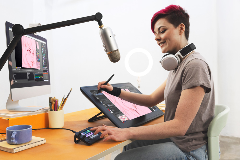 Vier analoge Knöpfe, zwei Drehregler und 15 Touch-Buttons lassen sich mit jeder Aktion belegen, die beim Streamen anfällt. Das Touch-Panel ist in einem Raster aus 3 mal 5 Tasten angeordnet, kann jedoch um bis zu 14 Seiten erweitert werden, die per Wischgeste aufrufbar sind. Mit den analogen Drehreglern können Streamer ihre Audio- und Lichtquellen steuern, bei der Videonachbearbeitung in die Timeline zoomen oder per Druck das Mikro stummschalten. Inputs und Outputs aus verschiedenen Soundquellen lassen sich dank der integrierten Audio-Mixer-Software getrennt voneinander ansteuern und mit den Drehreglern kontrollieren.