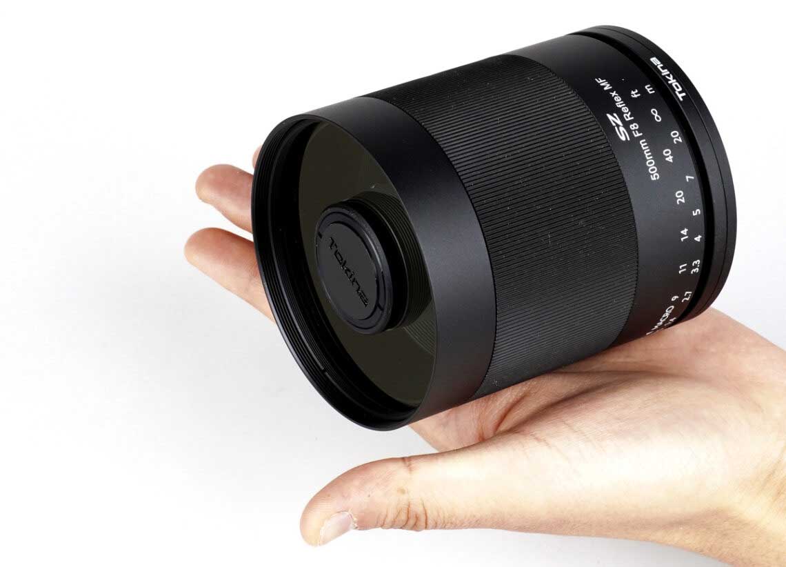 Dank des katadioptrischen optischen Designs, auch als Reflex- und Spiegellinsenobjektiv bezeichnet, wird eine sehr lange Brennweite von 500 Millimetern realisiert, die gleichzeitig extrem kompakt und leicht ist. Spiegelobjektive sind Tele-Fotoobjektive, die eine Kombination von 3 Linsen enthalten, die an der Außenseite des Glases versilbert sind, um das Licht zwischen den Enden des Objektivs hin und her zu reflektieren.