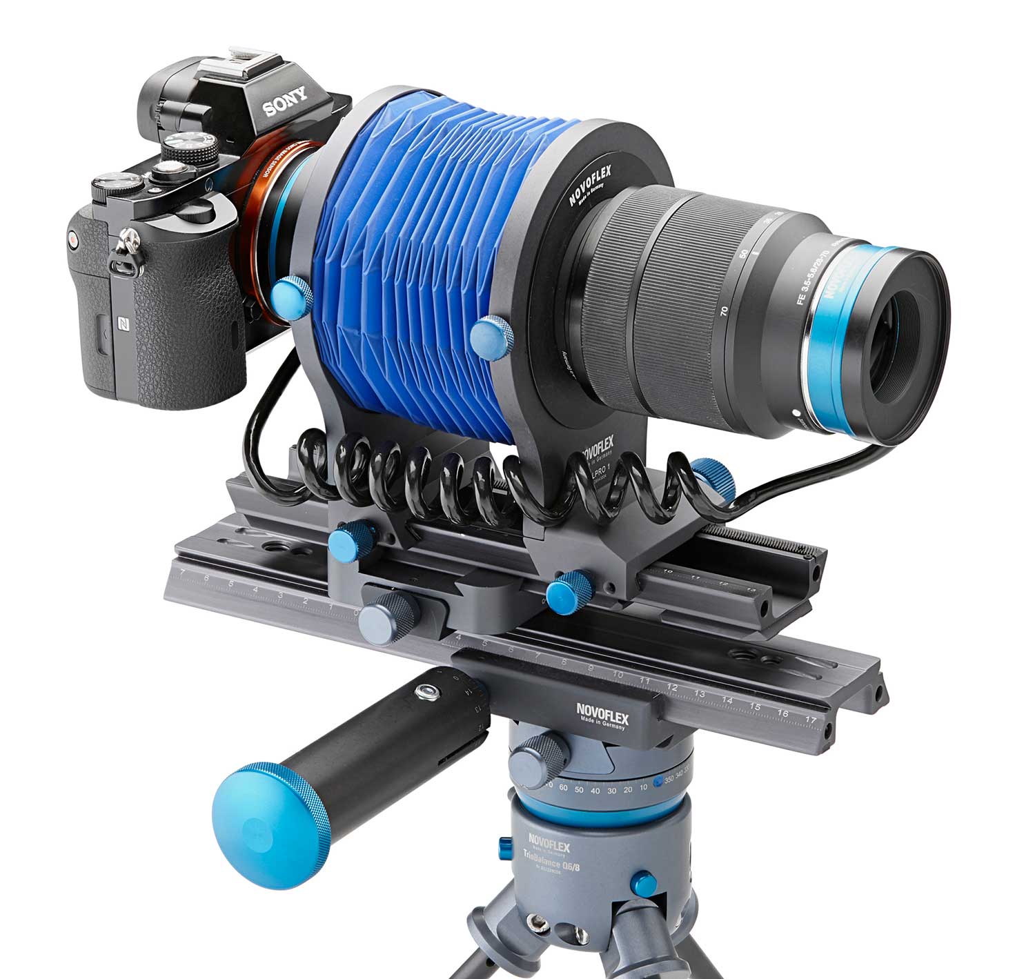 Durch die Verwendung eines Retro-Adapters erübrigt sich unter Umständen die Anschaffung eines Makroobjektivs. So wird beispielsweise beim direkten Einsatz an der Kamera mit einem 18–105 mm-Zoomobjektiv in Retrostellung bei einer Brennweiteneinstellung von 45 mm ein Abbildungsmaßstab von 2:1 erreicht. Noch stärkere Vergrößerungen sind mit Hilfe von Balgengeräten möglich, die Novoflex ebenfalls anbietet. So lässt sich mit einem 35 mm-Objektiv in Verbindung mit einem BALPRO 1 bei vollem Balgenauszug ein Abbildungsmaßstab von 6:1 erzielen. Außerdem werden die Universalbalgengeräte der BALPRO- und CASTBAL-Serien in Verbindung mit dem NEX-RETRO zu automatischen Balgengeräten mit voller Übertragung für das Sony E-Mount-System.
