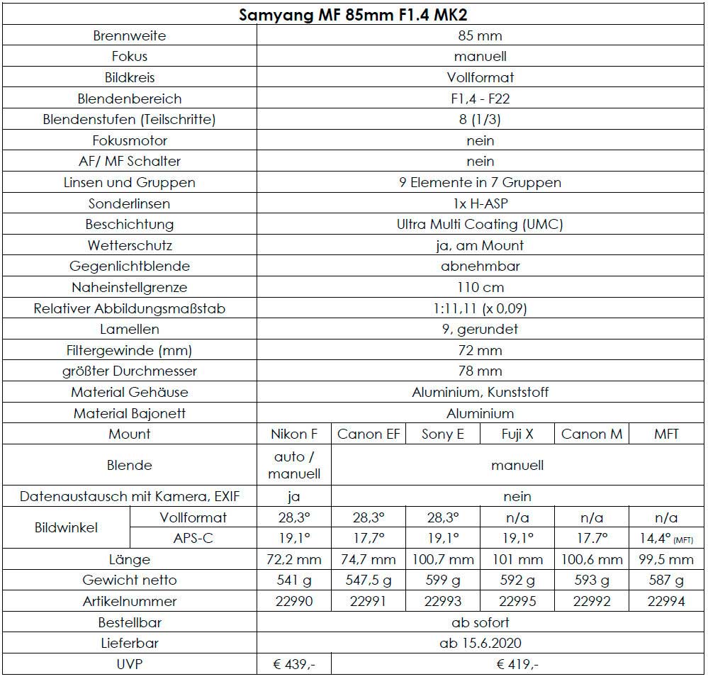 Vollformat-Porträtobjektiv Samyang MF 85mm F1,4 überarbeitet