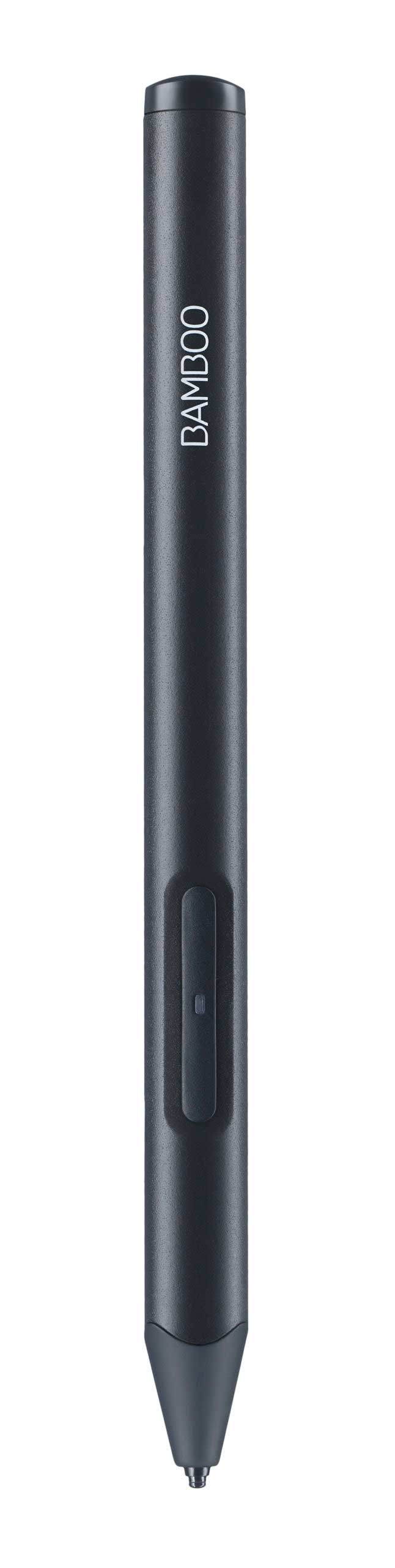 Der Bamboo Ink wird mit 3 feinen, austauschbaren Spitzen (weich, mittel und hart) geliefert. Dank seines dreieckigen Designs und der Soft-Touch-Oberfläche soll er angenehm in der Hand liegen. Der Stift erfasst den Druck, der auf die Oberfläche eines Windows-Geräts ausgeübt wird, kontinuierlich erfasst und übermittelt ihn an das Mobilgerät. Die beiden Seitentasten lassen sich mit Shortcuts (abhängig vom PC/Gerät) belegen.