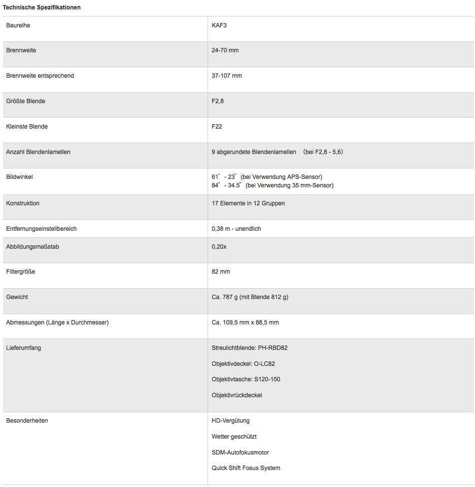 Das HD PENTAX-D FA 24-70mm F/2,8 ED SDM WR kann auch problemlos an allen Kameras der PENTAX K-Serie verwendet werden. Umgerechnet auf das 35-mm-Format entspricht die Brennweite 37-107 mm.