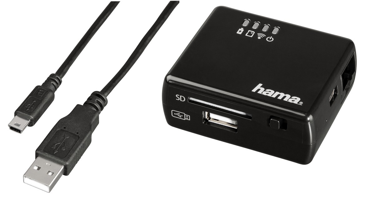 Mit dem neuen WiFi-Datenleser von Hama lassen sich Daten von SD-Karten oder USB-Sticks an alle Apple-Geräte, die mindestens iOS 5 als Betriebssystem haben, übertragen – ohne dass dafür iTunes erforderlich ist. Zudem kann man den Datenleser auch als einfachen WiFi-Repeater oder Router verwenden. Wird das Gerät per Kabel mit dem Netzwerk verbunden, können bis zu fünf mobile Geräte per WLAN eine Internet-Verbindung aufbauen. Das ist vor allem dann praktisch, wenn im Hotelzimmer nur ein LAN-Anschluss vorhanden ist, iPad oder iPhone jedoch WLAN benötigen. Dank Bridge-Modus ist es möglich, gleichzeitig auf Internet und Daten zu zugreifen.