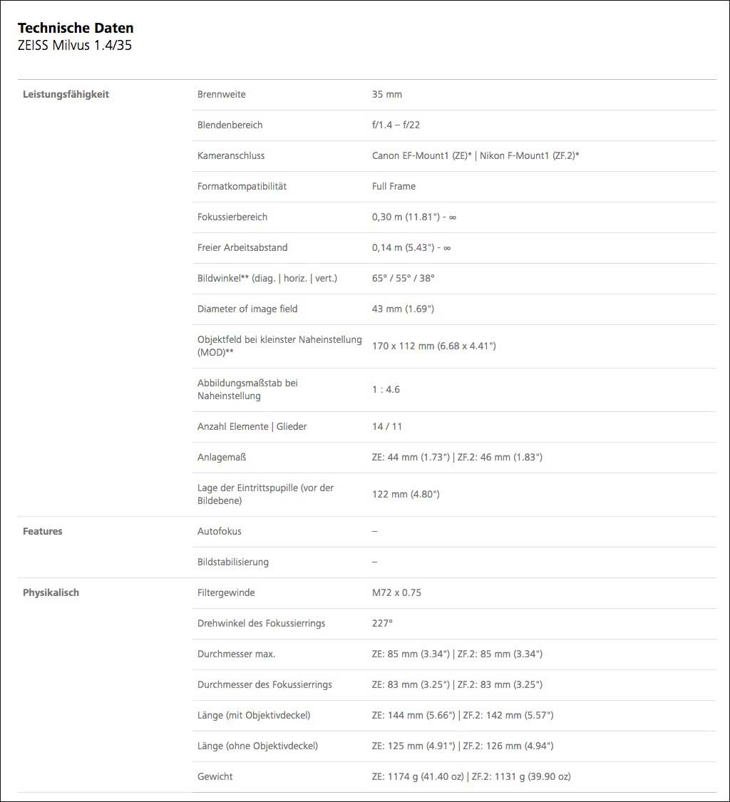 Zeiss Milvus 1.4/35 für Spiegelreflexkameras