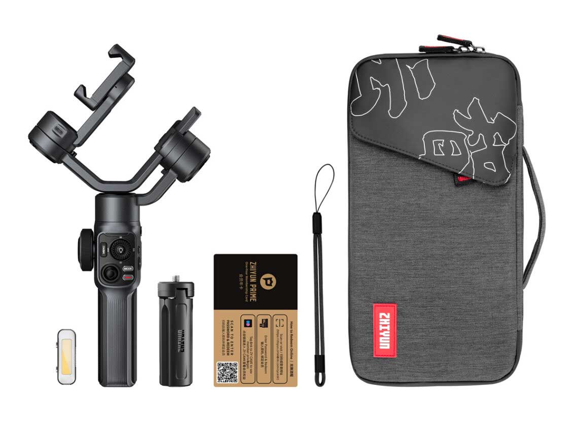 Zhiyun Smooth 5, + einem Stativ, einer Tragetasche, einem magnetisches Aufhelllicht und einer VIP-Mitgliedskarte