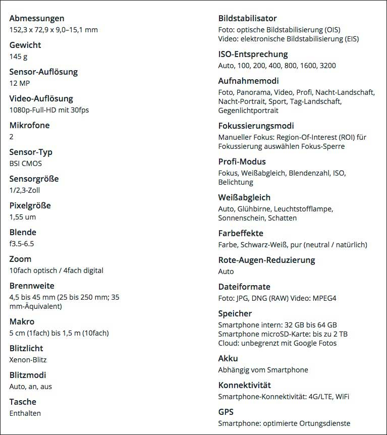 Das Hasselblad True Zoom stattet das Moto Z mit einem 10-fachen optischen Zoom, einem Xenon-Blitz und einem mechanischen Verschluss aus. In Verbindung mit dem Hasselblad True Zoom lassen sich Raw-Fotos schießen, die mit der Hasselblad-Software Phocus bearbeitet werden können.