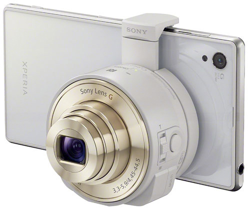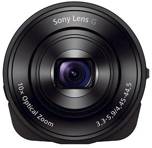 Zum deutlich geringeren Preis von 200 Euro ist die auf der Kompaktkamera DSC-WX200 basierende SmartShot DSC-QX10 mit einer Auflösung von 18,2 Megapixeln zu haben. Hier hat Sony einen kleineren Sensor und ein Sony G-Objektiv mit 10-fach-Zoom (25–250mm), ebenfalls mit Bildstabilisator, verbaut. Die Anfangsöffnung des Objektivs liegt bei f3,3. Die Empfindlichkeit ist von ISO 100 bis maximal 12800 einstellbar.