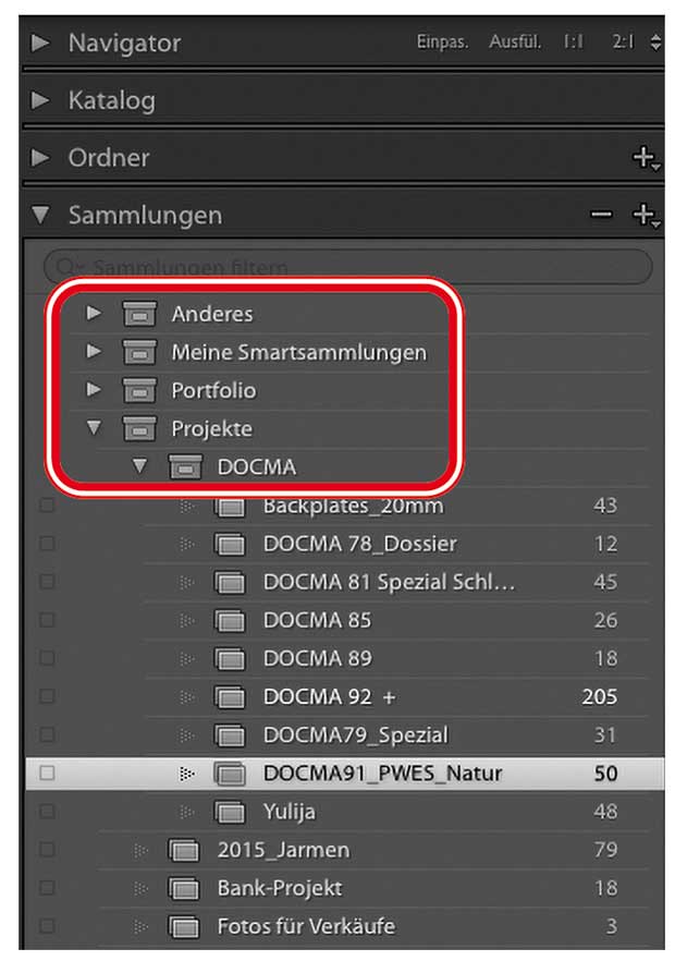 Sammlungen und Sammlungssätze in Lightroom