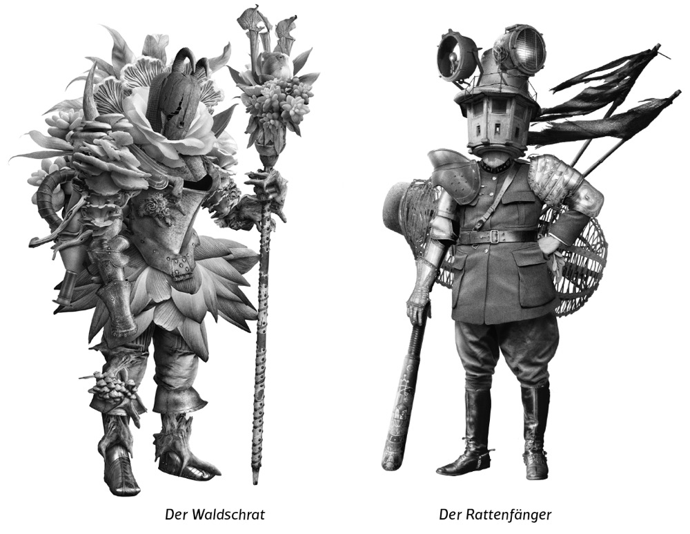 Am Ende lief es immer auf eine uneinheitliche Mixtur verschiedener Techniken hinaus: Die einzelnen Elemente der schon komplexen Roh-Montagen mussten nachträglich an die Beleuchtungsverhältnisse des Motivs angeglichen werden. Teils funktionierte das mit Retuschen in Photoshop, oft kam Steve aber auch nicht um das Hinzumalen von Details und Verbindungsstücken herum. Das Finish bestand vor allem darin, die Körnungsstruktur und die Oberflächencharakteristik mit Texturen zu vereinheitlichen.