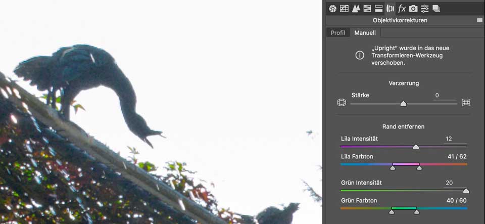 Die meisten CA lassen sich im Objektivkorrektur-Panel in Camera Raw beziehungsweise Lightroom leicht entfernen, indem Sie im Profil-Tab die Checkbox »Chromatische Aberration entfernen« setzen.