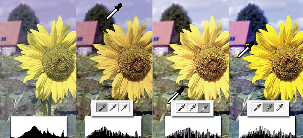 Beide Werkzeuge greifen hier auf dieselbe Funktion zuru?ck. Sie sehen das auch daran, dass bei dem Werkzeug, in dem Sie die Pipetten-Empfindlichkeit nicht umgestellt haben, trotzdem Ihre Korrekturwerte voreingestellt sind. Wählen Sie zunächst die Schwarz-Pipette und klicken Sie auf Ihren ersten Markerpunkt, danach mit der Weiß-Pipette auf den zweiten. Hiernach sind die Tonwerte gespreizt. Ein Klick mit der Grau-Pipette auf den dritten Markerpunkt gleicht den Farbstich aus. Dieser Arbeitsschritt muss unbedingt am Ende erfolgen, sonst kann es zu erneuten Farbverschiebungen kommen.