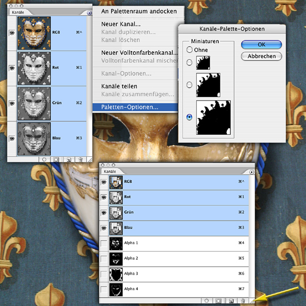 Die „Paletten-Optionen“ der Kanäle-Palette betreffen nicht den Umgang mit den Kanälen, sondern ihre Darstellung in der Palette.