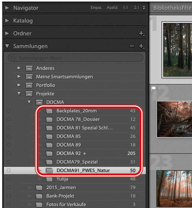Sammlungen und Sammlungssätze in Lightroom